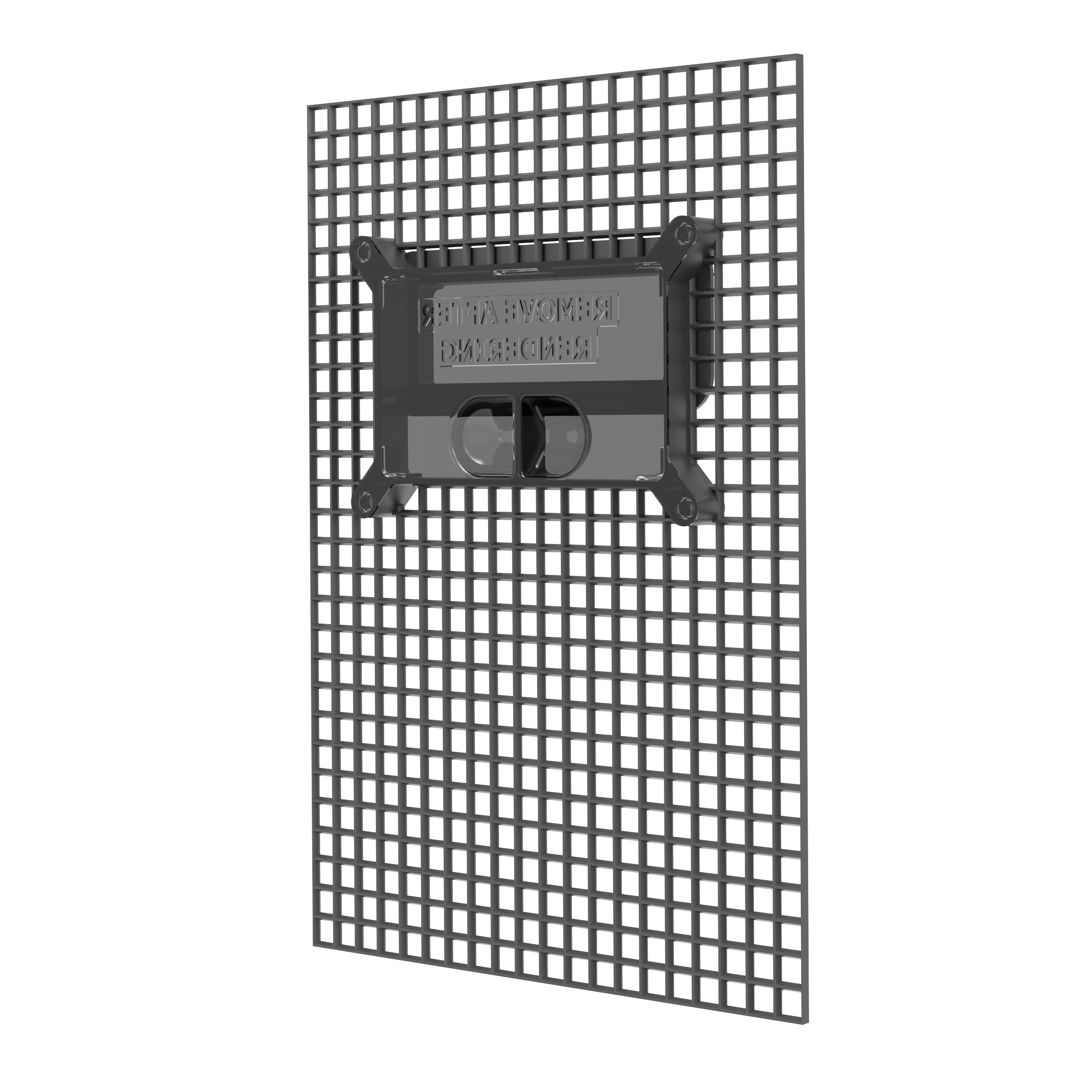 This lathe plate is designed to be used to assist rendering over the 240mm acoustic ventilator on the interior wall. The lathe plate is designed to fix an internal adjustable louvre.
